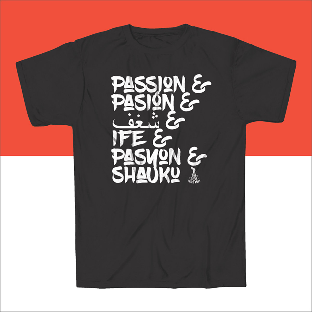 The "Passion in Translation" tee is designed to capture the range of meanings 'passion' carries around the world. While it can mean devotion and desire, passion can also translate to rage and anger. Third Root believes some movements require a combination of all these emotions to create lasting change. The tee invites all to consider five translations of passion: English, Spanish, Arabic, Yoruba, Filipino, and Swahili. In whatever way you've found yourself immersed in the fight for justice and liberation, commit to move with passion. There's no time left for passive or half-hearted activism.
