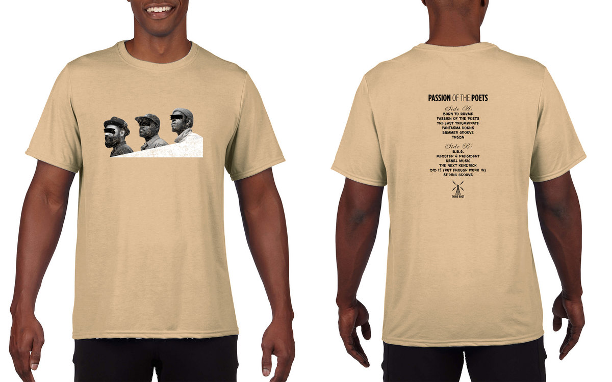 The Triumvirate Tee. Symbolizes Third Root as an idea, institution, icon, not so much as simply men or artists. It removes the personal identity and becomes "What is this about?" instead of "Who are they?”